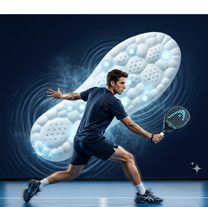 La semelle 4D conçue pour le padel : Amorti, Stabilité et Zéro douleur.